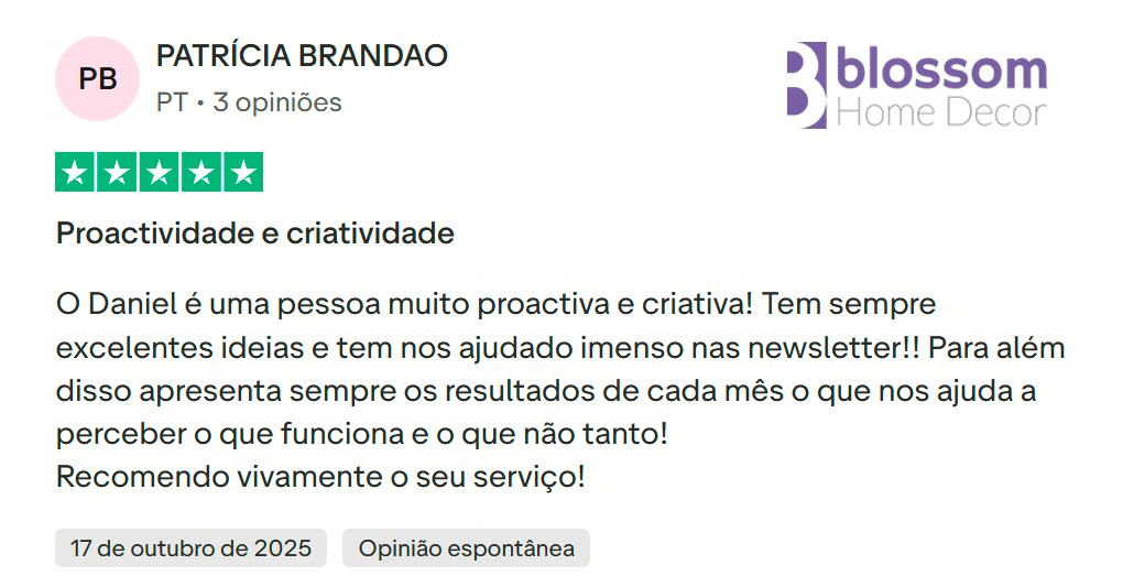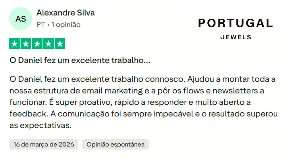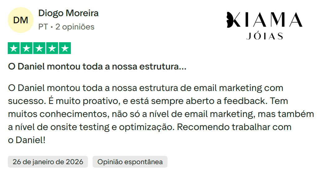 Olá sou o Daniel!Passados 2 anos a criar websites, designs e emails para infoprodutos, apercebi-me de algo.Email marketing para e-commerce, é o meu foco.Depois de ver quão rápido conseguia obter resultados e o quão satisfeitos estavam os meus clientes, decidi dedicar todas as minhas horas a aprender como otimizar os teus emails.